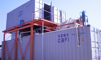 該項目是集裝箱式板冰機及儲冰庫一體系統(tǒng),集裝箱式系統(tǒng)的特點是運輸及安裝方便,集裝箱內(nèi)設備可預先裝好,現(xiàn)場只需安裝外部配件及管路。如有需要,經(jīng)過簡單拆除和再安裝,可以在短時間內(nèi)轉移全套設備。