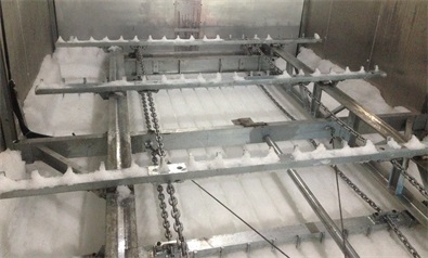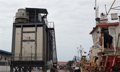 莫桑比克40噸40噸片冰耙式自動儲冰系統(tǒng)用于遠(yuǎn)航捕撈保鮮供冰??蛻羰钱?dāng)?shù)刈畲蟮膹氖逻h(yuǎn)洋捕撈的公司之一,因為增加了更多的船只,所以他們需要更多的冰。因此,他們購買20噸集裝箱式片冰機和40噸儲冰耙式輸出系統(tǒng)。該系統(tǒng)直接安裝在港口岸邊,船只靠岸后,可通過稱重螺桿系統(tǒng),自動稱重出冰,所有過程無需人工手動操作,全部由自動控制系統(tǒng)完成,實現(xiàn)了高度自動化。