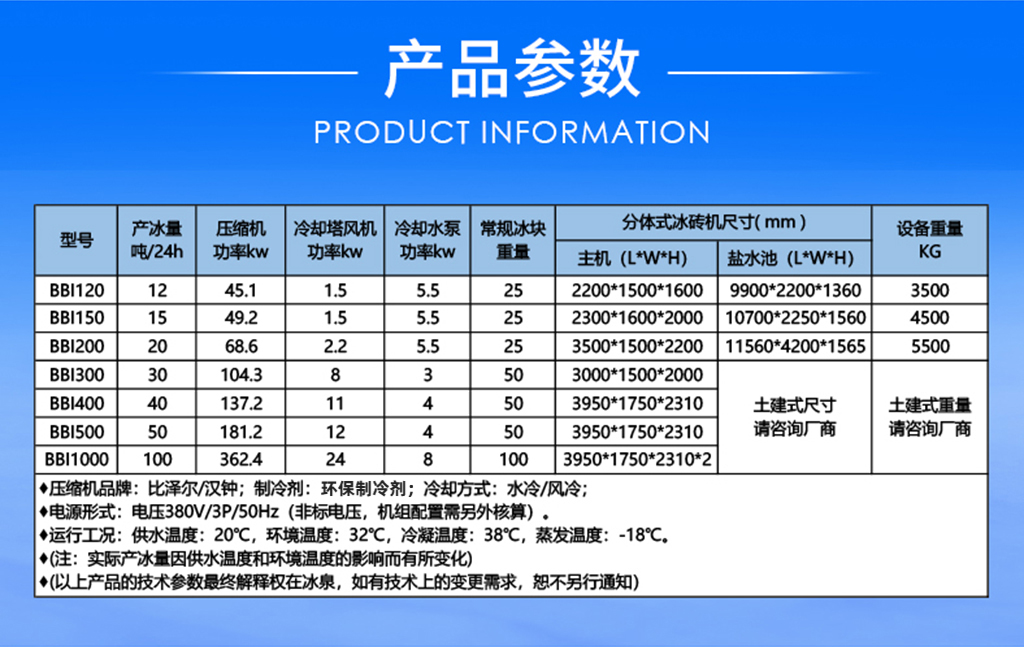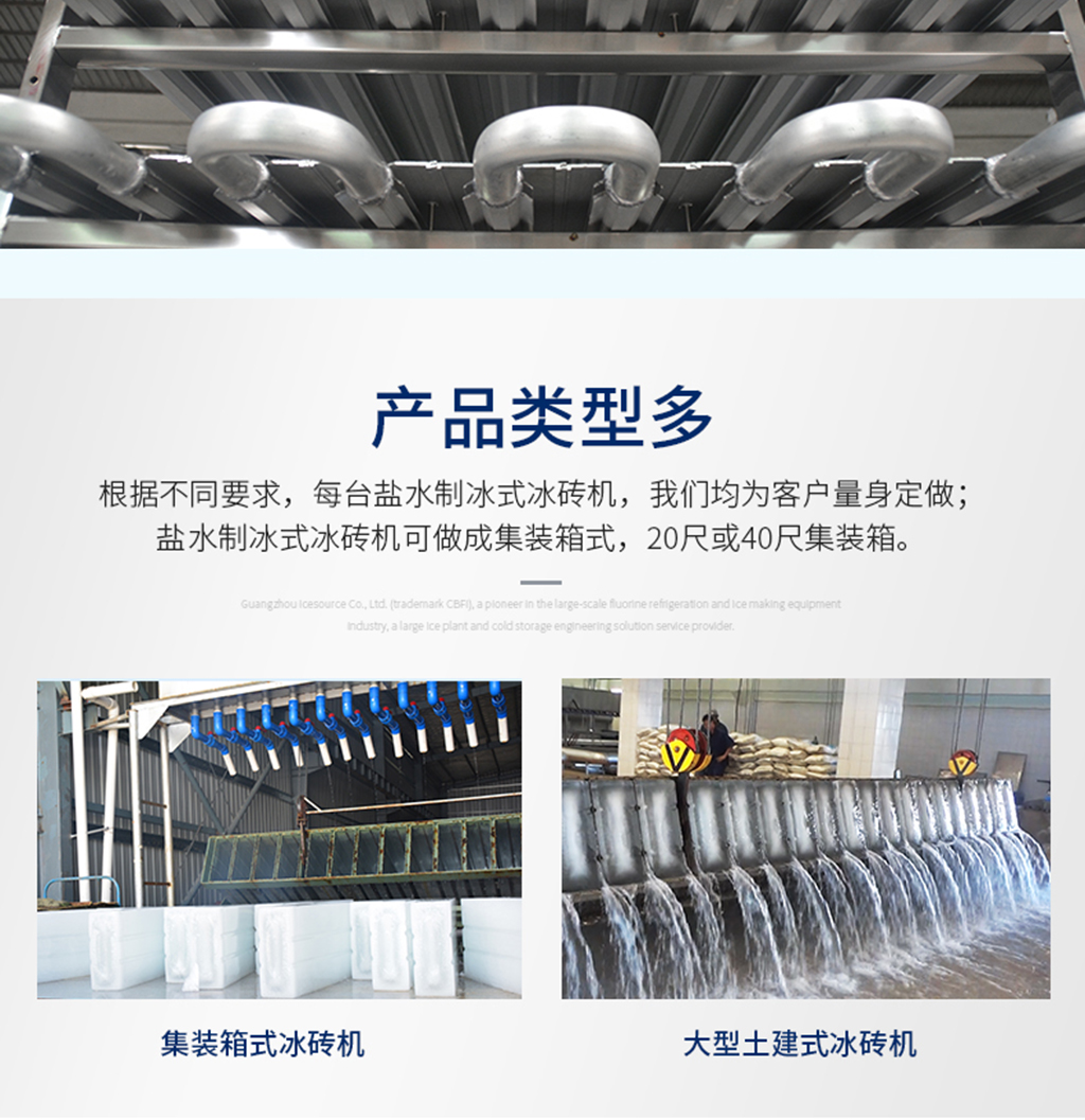 廣州冰泉是大型氟制冷冰磚機行業(yè)開拓者,研發(fā)制造的全球第一臺日產(chǎn)冰量100噸的大型氟制冷冰磚機2010年在馬來西亞成功運行?,F(xiàn)單臺(套)設(shè)備日產(chǎn)冰量從1噸~200噸,可以滿足不同客戶需求。