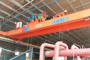 行車(chē)裝置對(duì)于冰磚機(jī)來(lái)說(shuō)是一個(gè)必不可少的輔助設(shè)備。當(dāng)機(jī)器日產(chǎn)冰量越大的時(shí)候就越要依賴(lài)行車(chē)(一般3-100噸的冰磚機(jī)就需要行車(chē)了,1-2噸冰磚機(jī)使用的冰模大概有2.5kg、5kg、10kg等這種情況可用叉車(chē)或者其他的調(diào)取冰模的裝置,3-100噸的冰??蛇x性多,這個(gè)時(shí)候叉車(chē)滿足不了,所以行車(chē)是必不可少的輔助設(shè)備)。