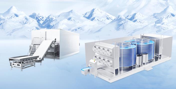 2.速凍設備:提供多種速凍機,如螺旋速凍機、隧道式速凍機、單螺旋速凍機、流態(tài)化速凍機等。這些設備專為快速冷凍食品設計,適用于肉類、海鮮、蔬菜等食品的快速凍結,確保食品質量并延長保質期。