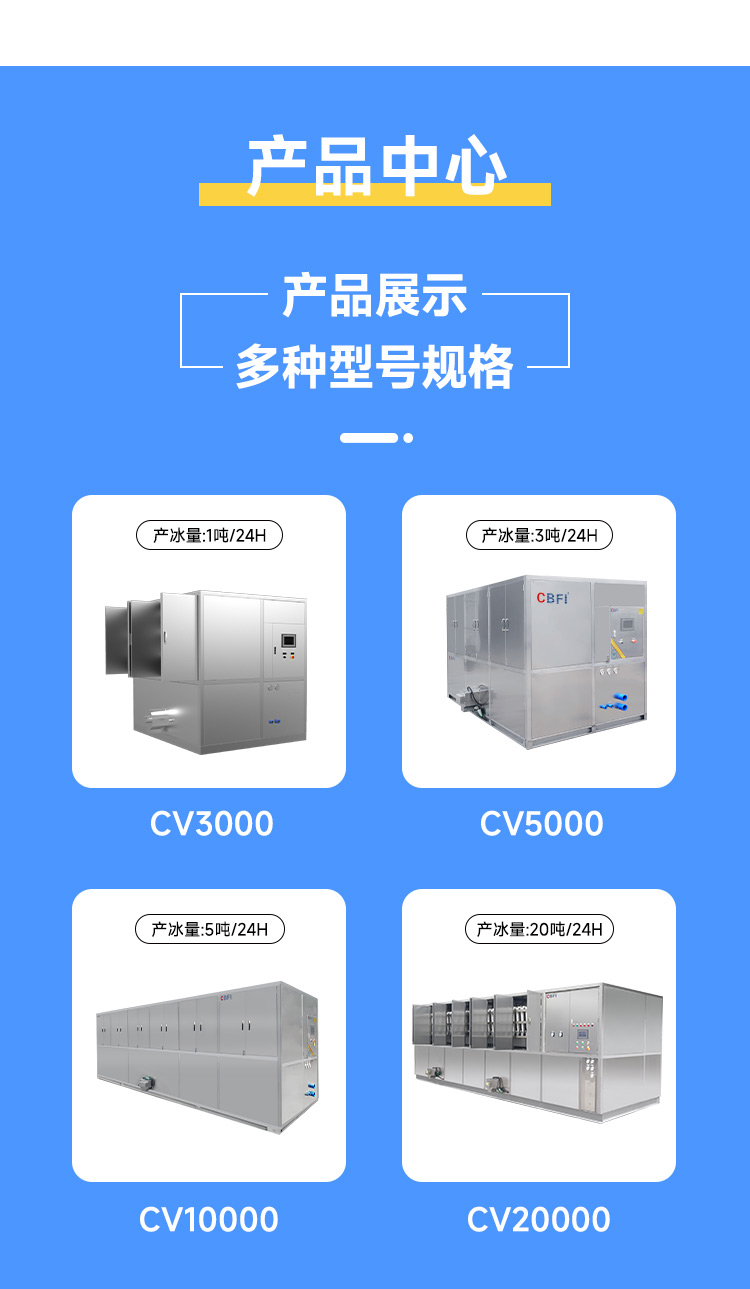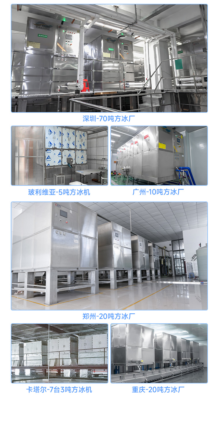 他們的方冰機(jī)型號(hào)多樣,適用于商用和工業(yè)用,滿足不同產(chǎn)量需求,從5噸到20噸不等,廣泛應(yīng)用于餐飲、飲品和其他需要大量方冰的行業(yè)。