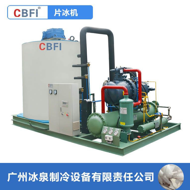 片冰機,所生產(chǎn)冰為薄片狀,薄片、干爽疏松狀的白色冰,厚度10~15mm,直徑約為12~45mm。片冰無尖銳棱角,不會刺傷冷凍物體。應(yīng)用于水產(chǎn)品加工、食品加工、禽肉類加工、蔬菜配送保鮮、醫(yī)藥行業(yè)、混凝土攪拌降溫等。