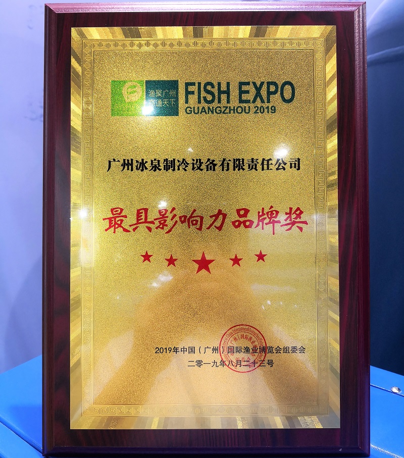 通過廣州國際漁博會組委會專家嚴格審評,一致認為冰泉制冷在制冰設(shè)備行業(yè)內(nèi)影響力較大,業(yè)績突出、社會反響良好,評選冰泉制冷為本次漁博會“最具影響力品牌獎”。
