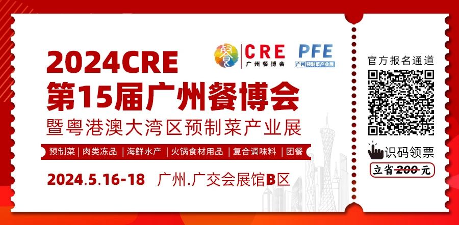 2024年5月16日-18日,華南最大餐飲產(chǎn)業(yè)鏈年度盛會——CRE·2024第15屆廣州酒店餐飲業(yè)博覽會暨大灣區(qū)預(yù)制菜產(chǎn)業(yè)展在廣州·廣交會展館B區(qū)舉行。